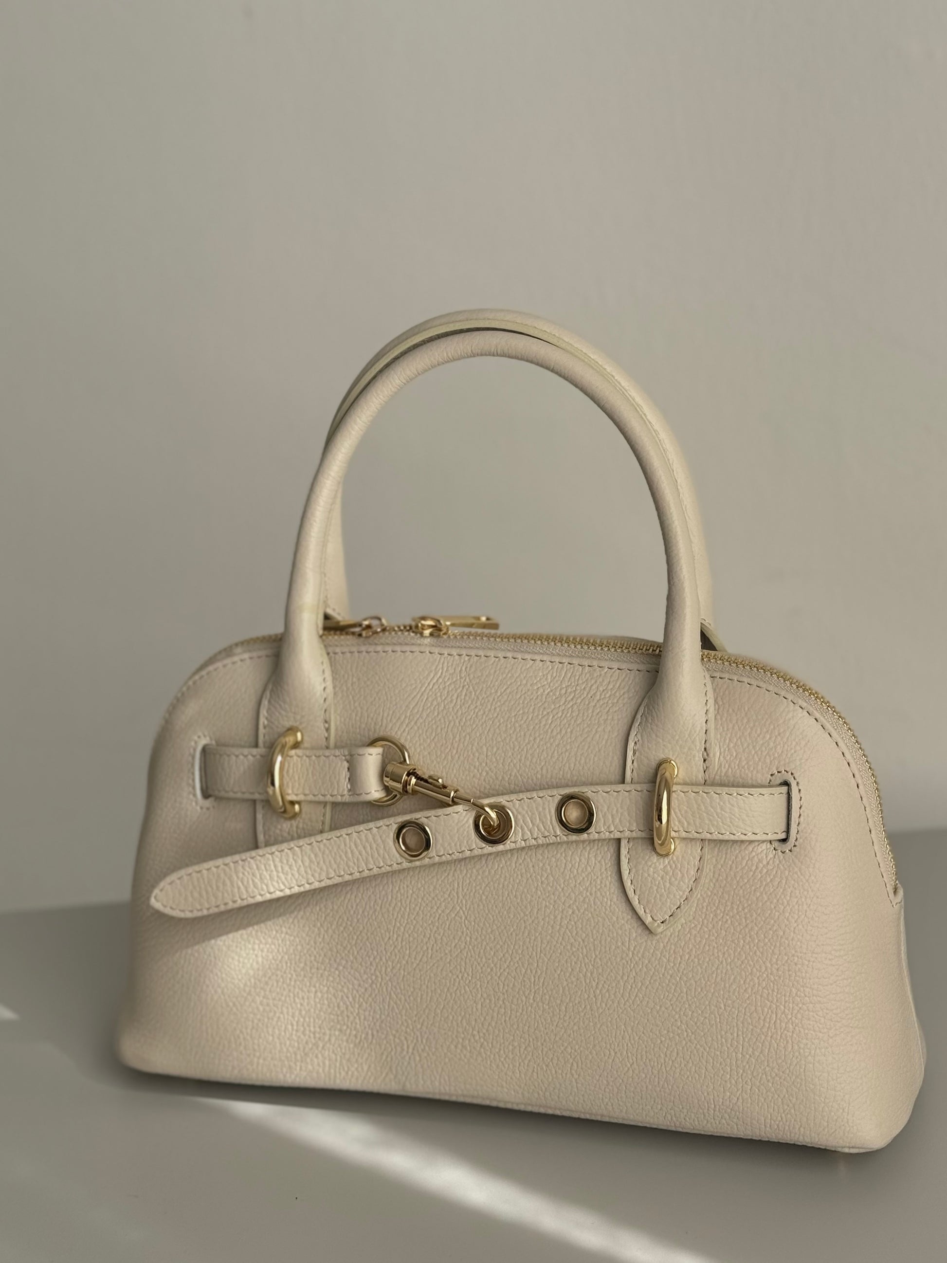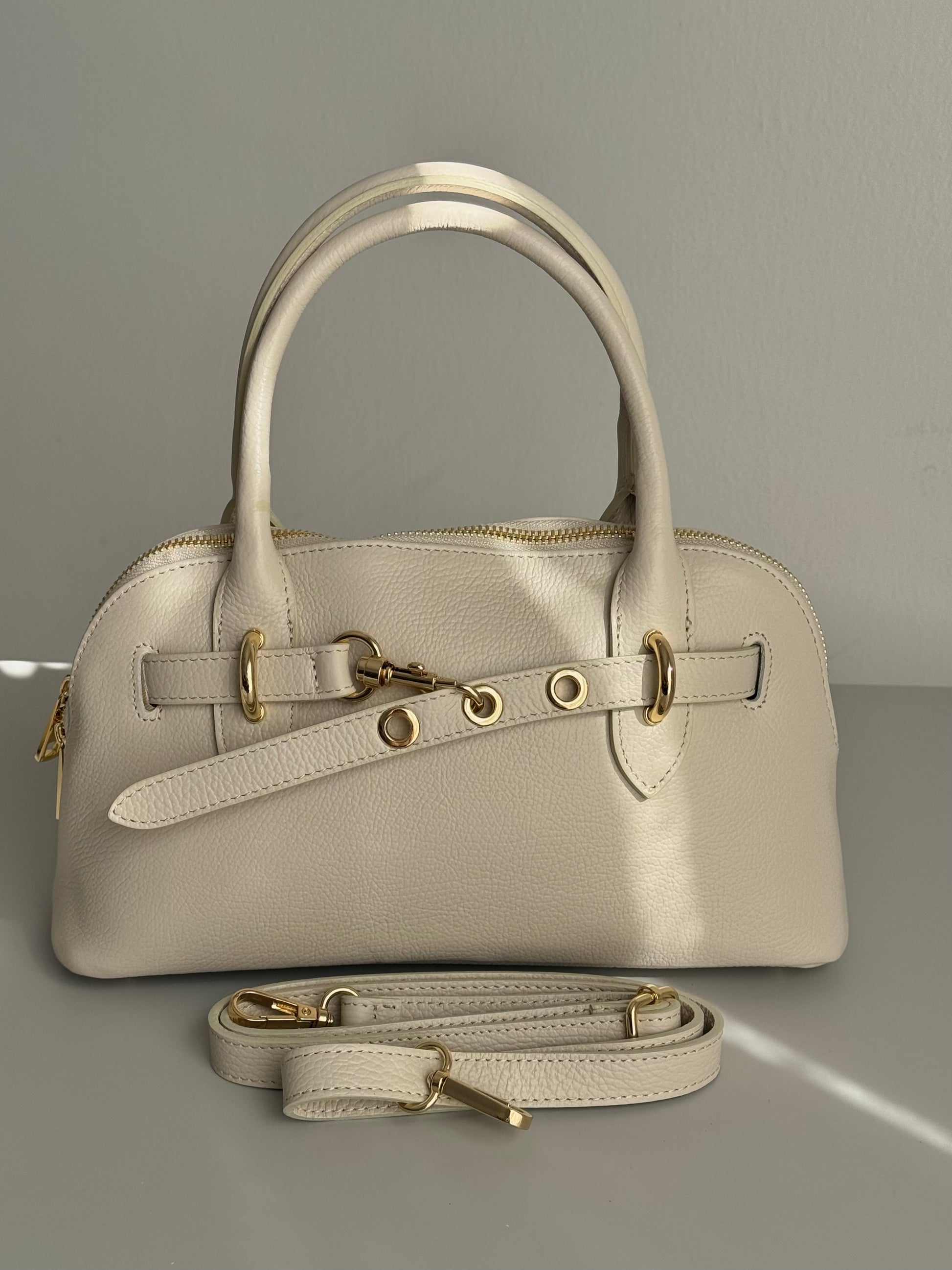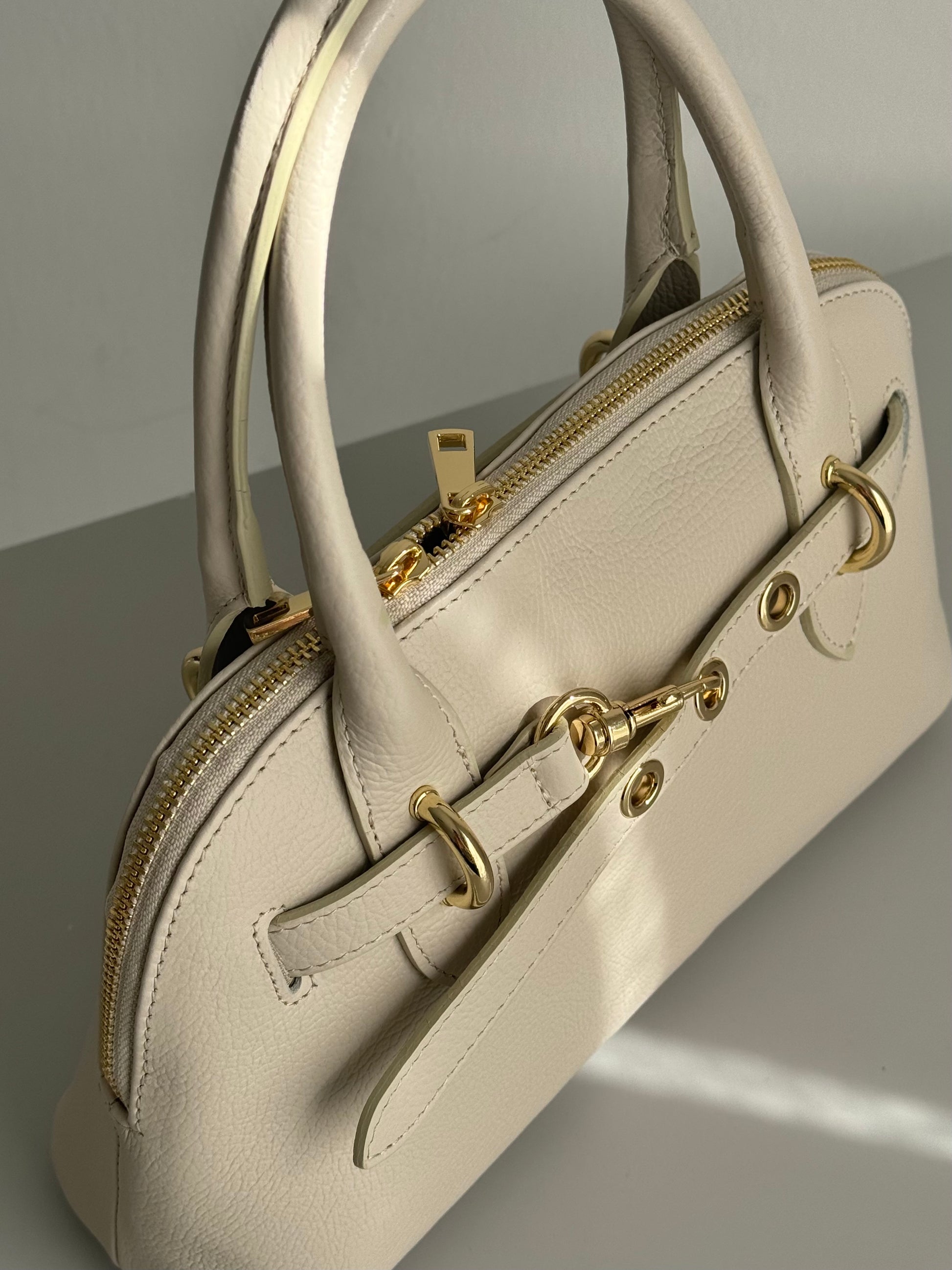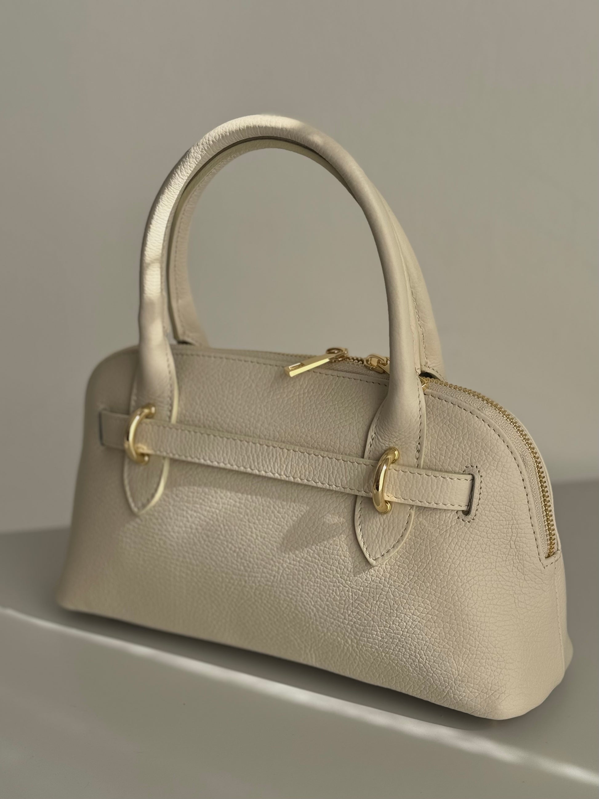 Elegancka torebka kuferkowa w kremowym kolorze z naturalnej skóry, Włochy