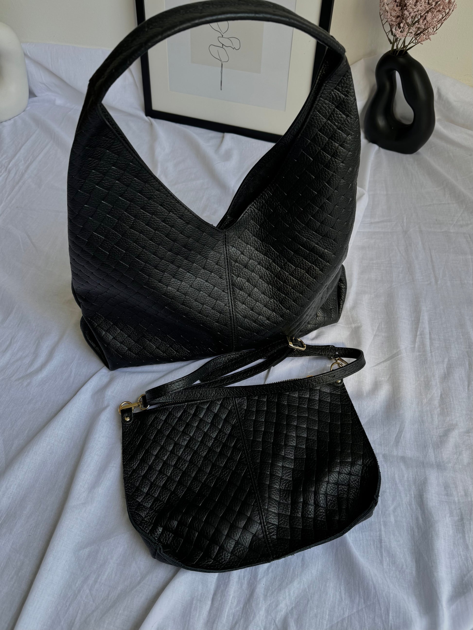 Torebka pleciona skórzana z kosmetyczką – #art124