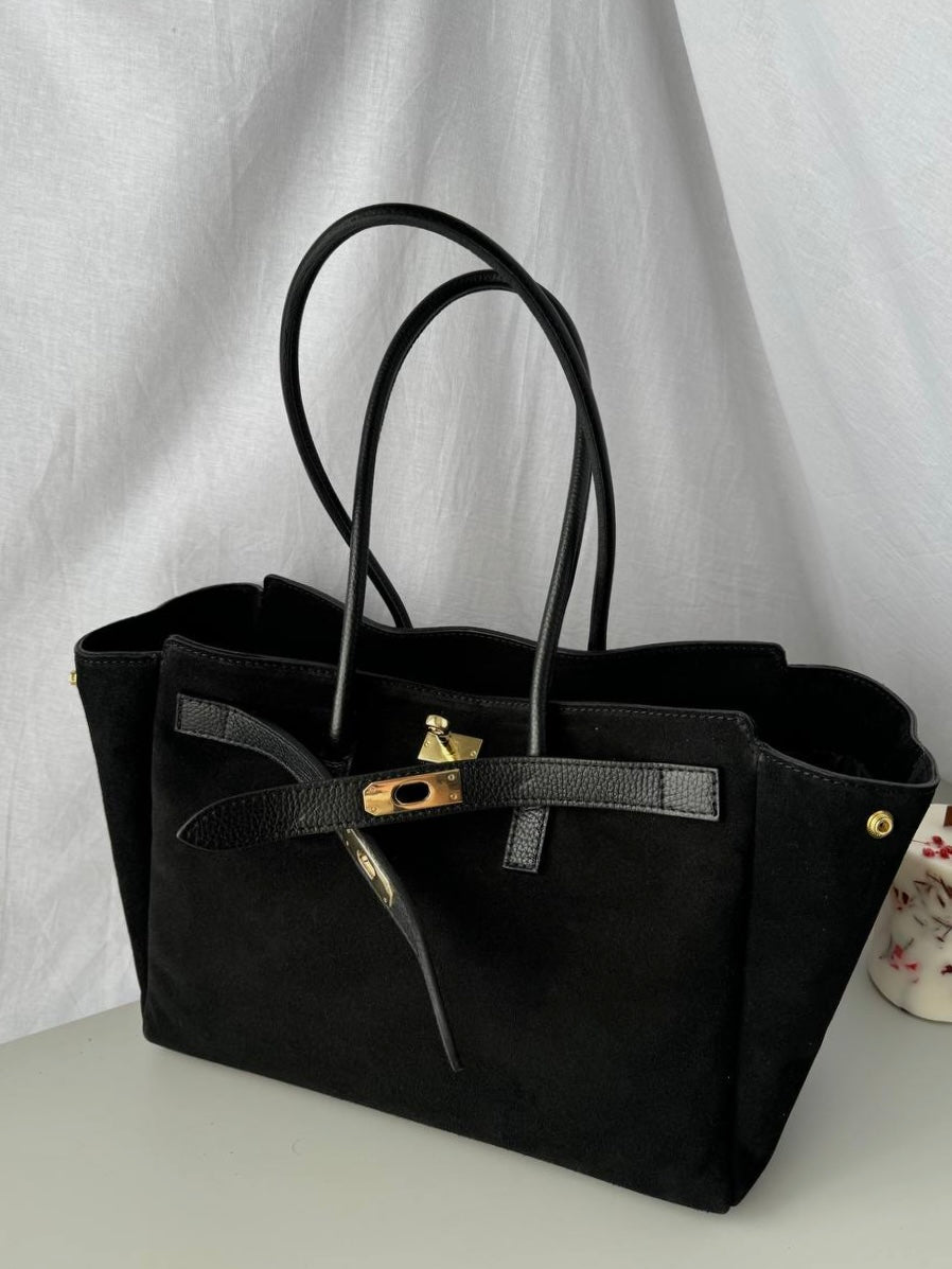 Stylowa torebka shopperka z naturalnego zamszu w modnym kolorze, Włochy