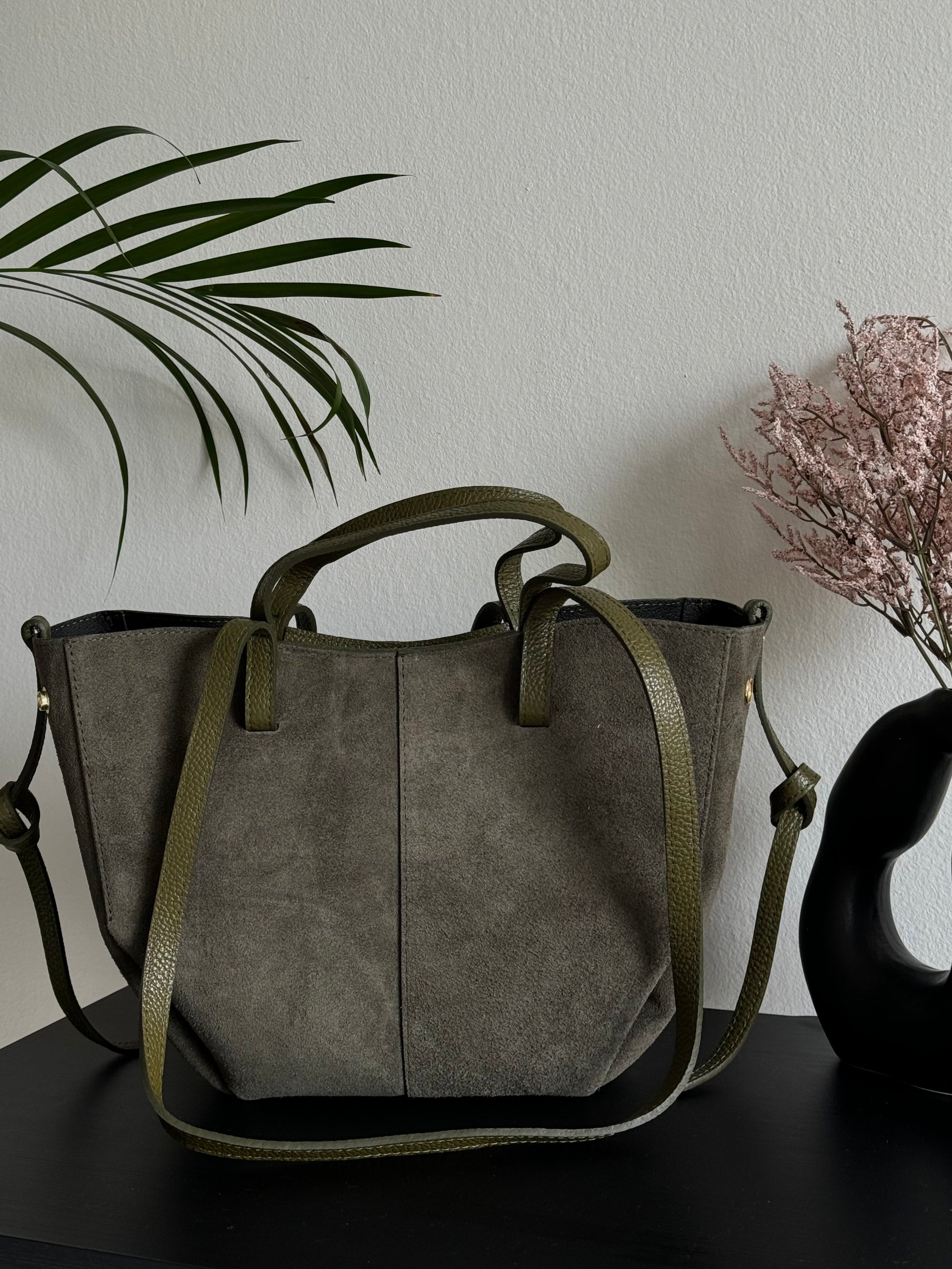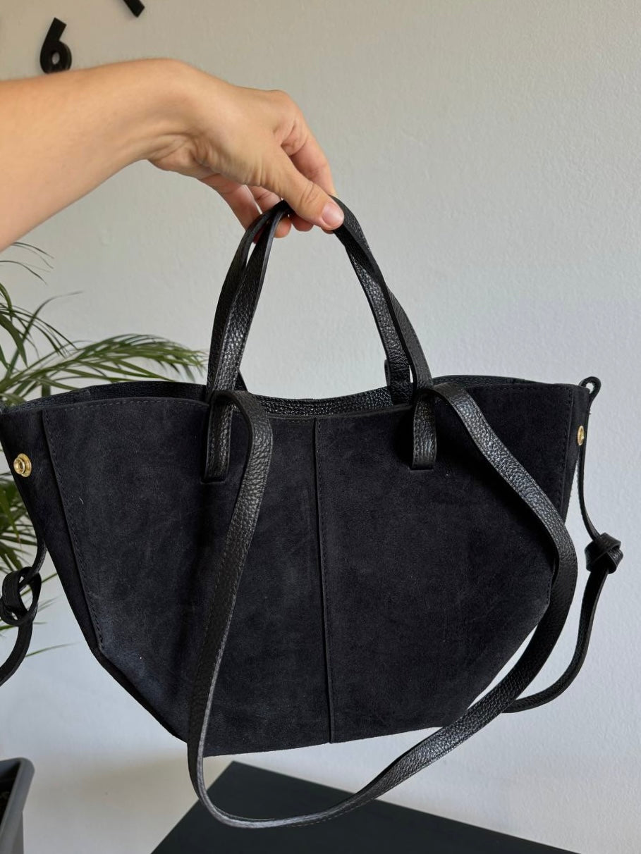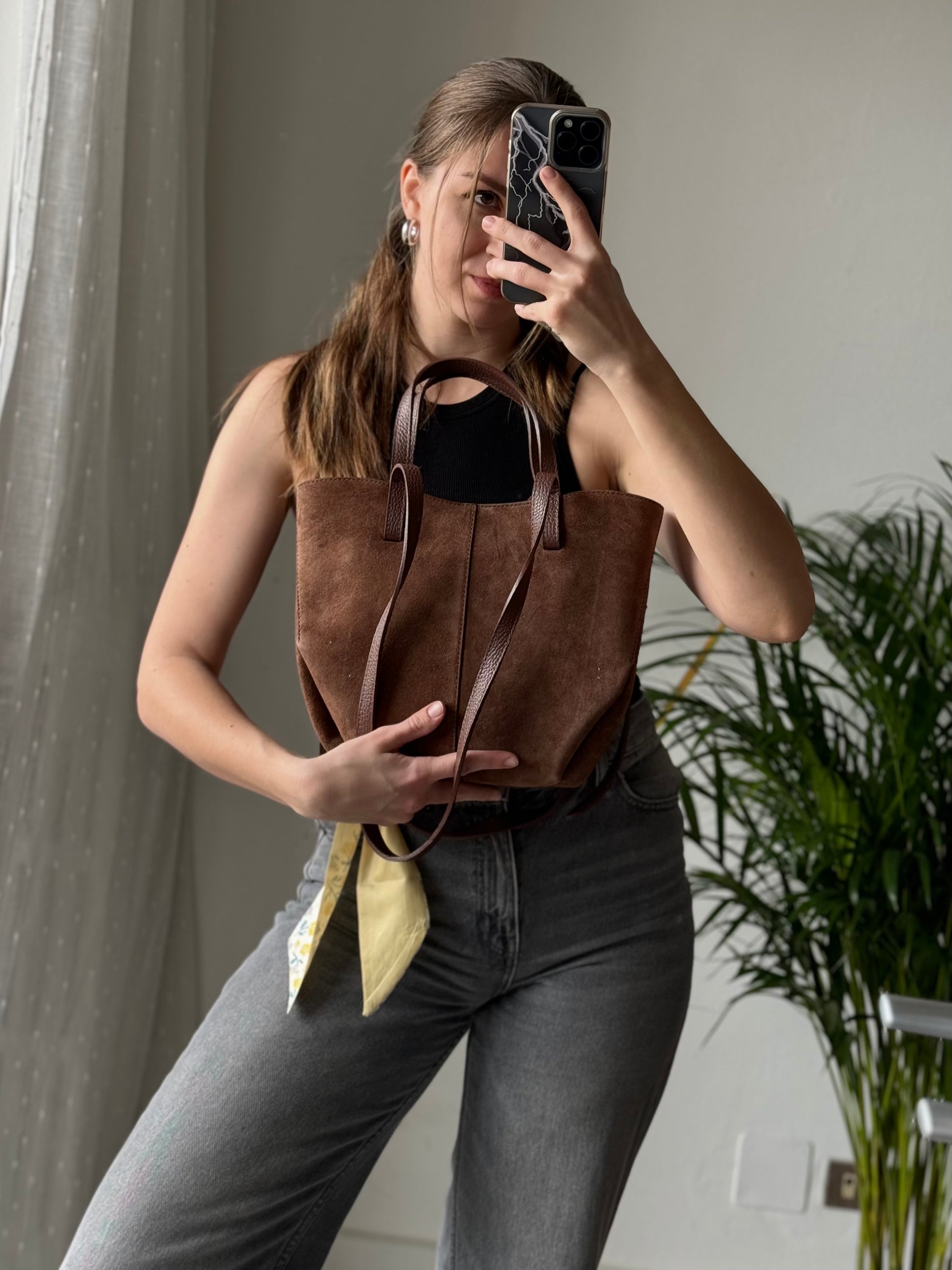 Stylowa torebka shopperka z naturalnego zamszu, Włochy