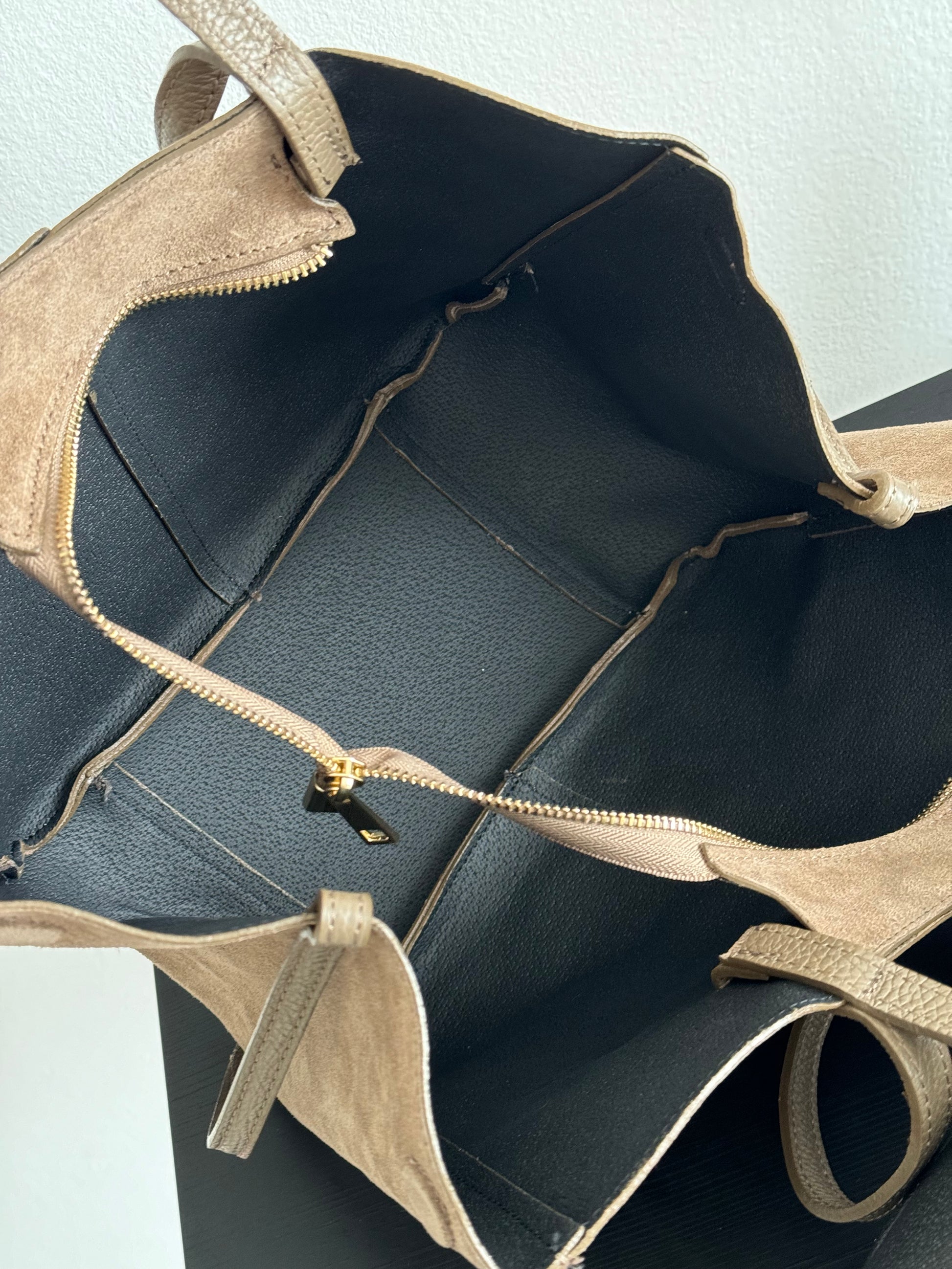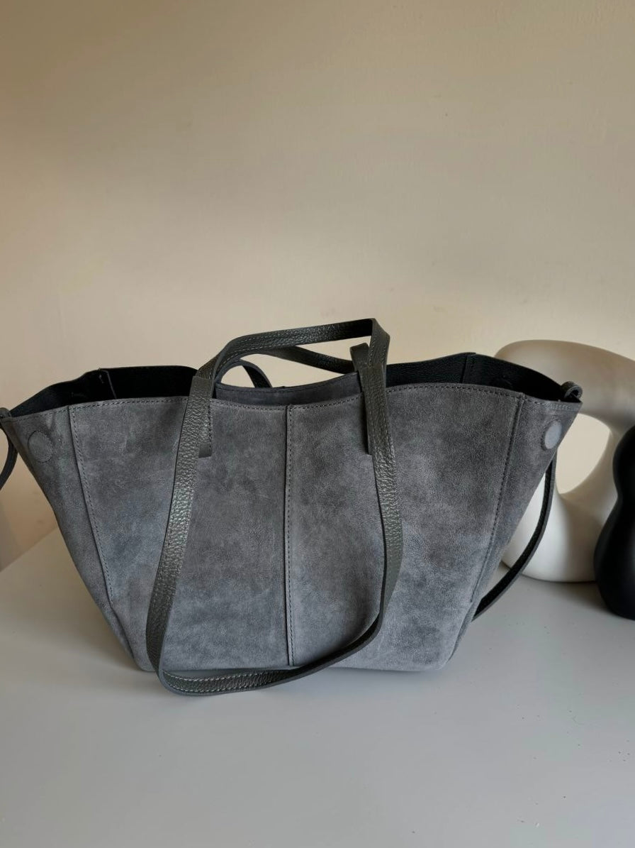 - Zewnętrzna część wykonana z miękkiej, luksusowej zamszowej skóry;