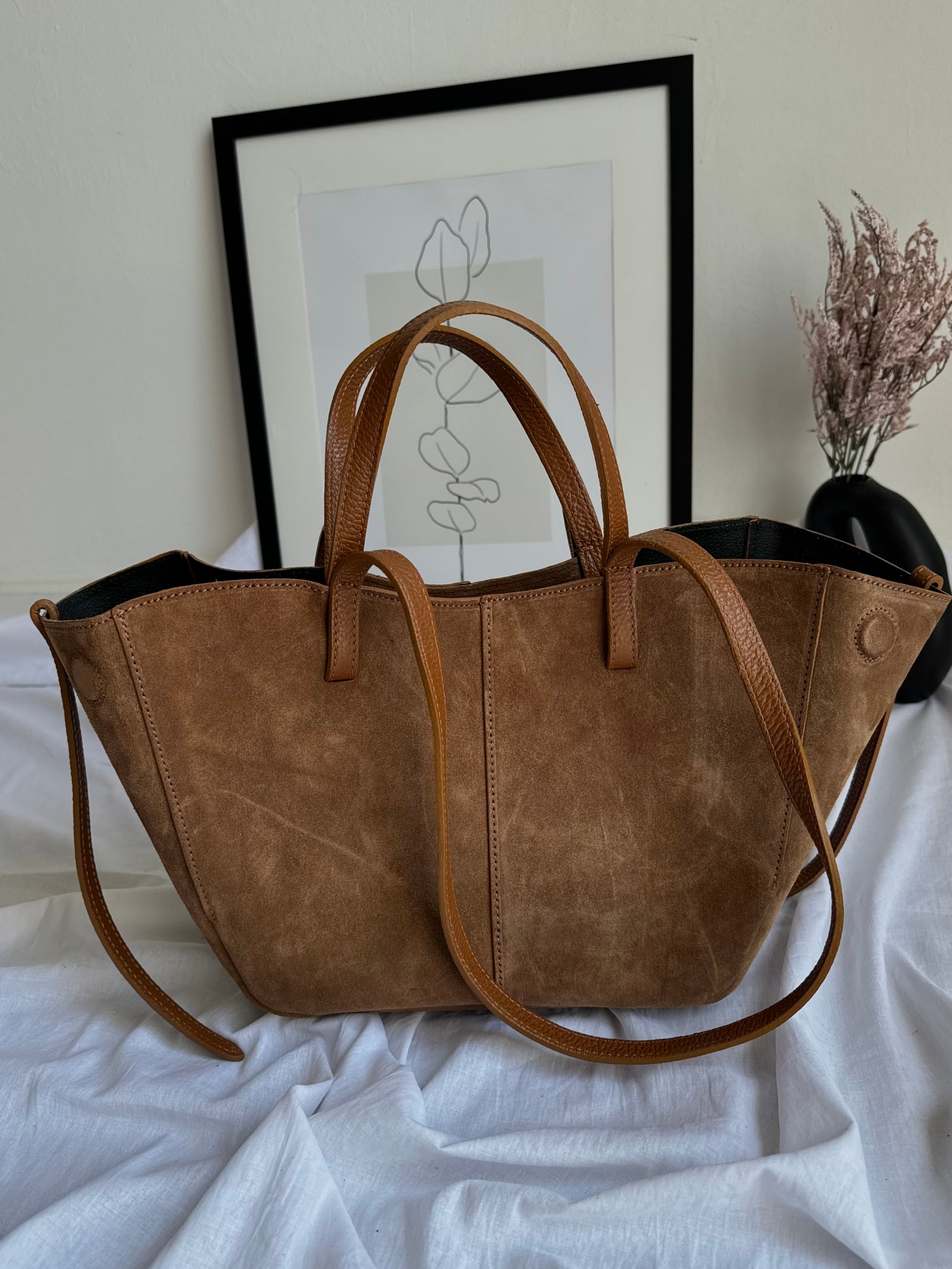 Torebka shopperka z naturalnego zamszy w modnym kolorze, Włochy