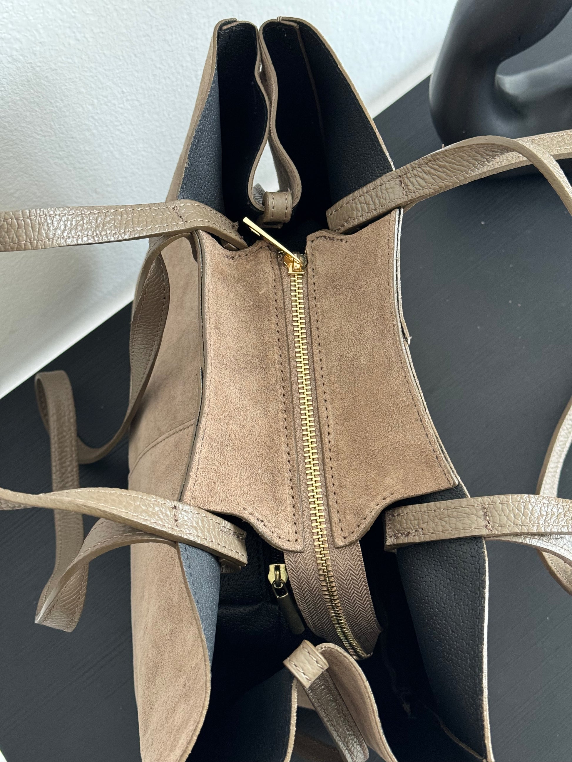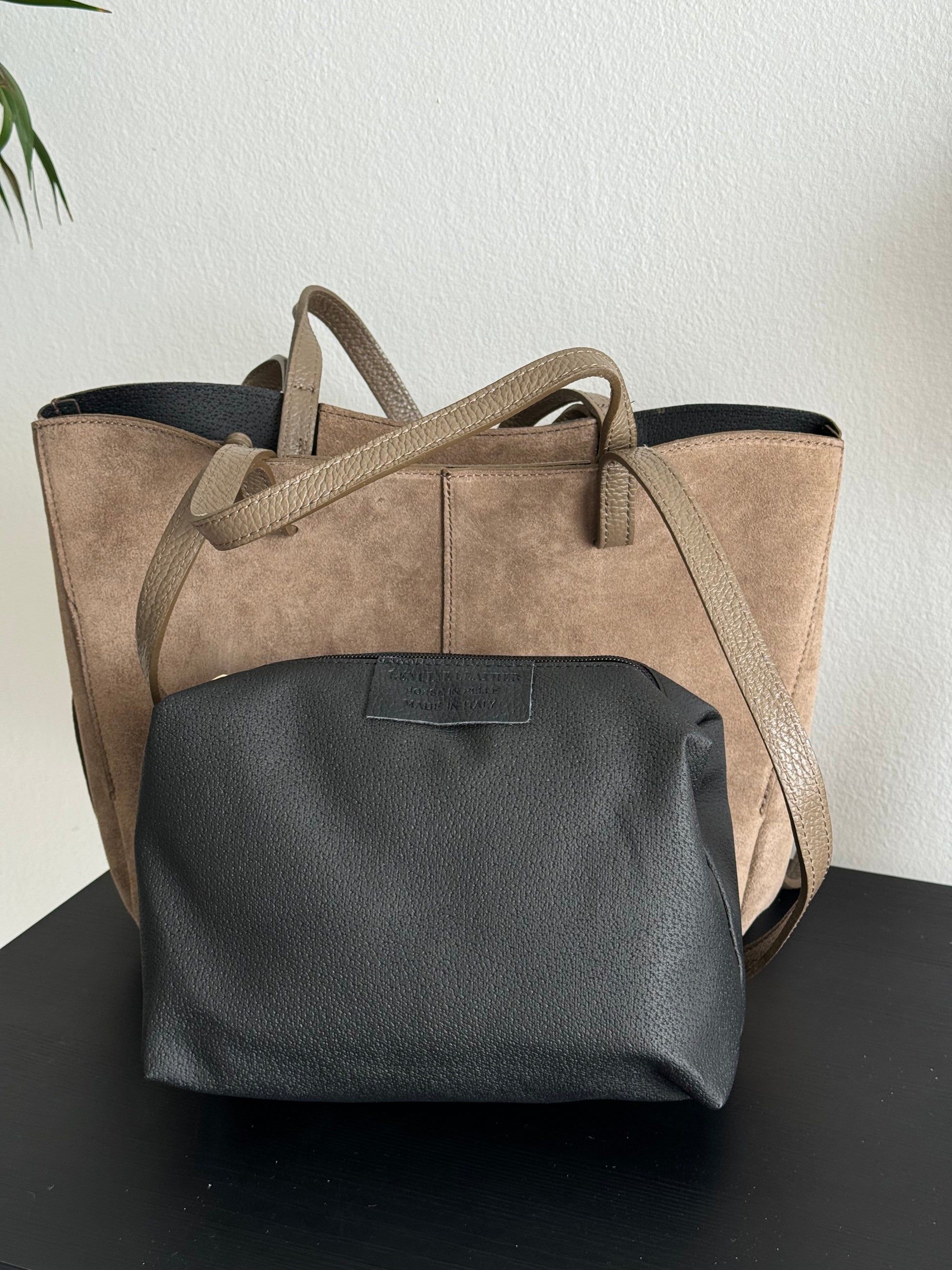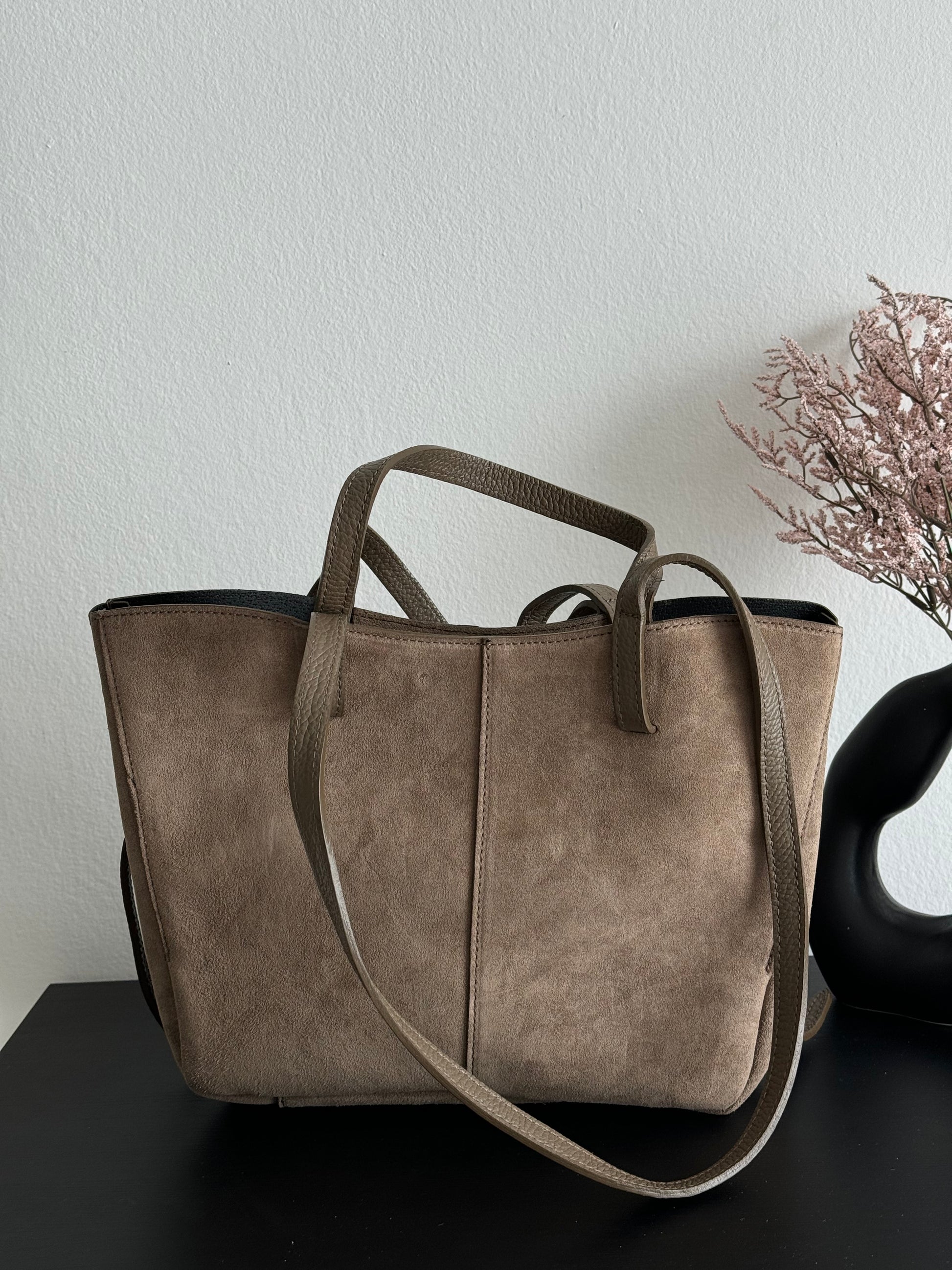 Elegancka i funkcjonalna torebka z naturalnej skóry (genuine leather / vera pelle) w ponadczasowym kolorze taupe scuro – idealna dla osób ceniących styl, jakość i wygodę.
