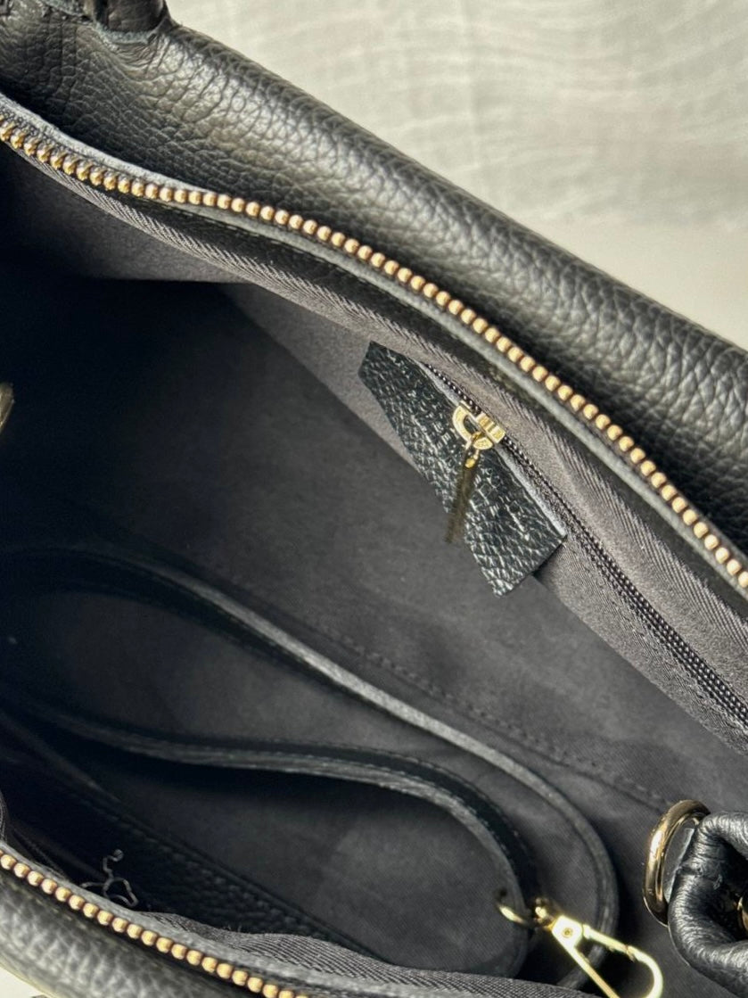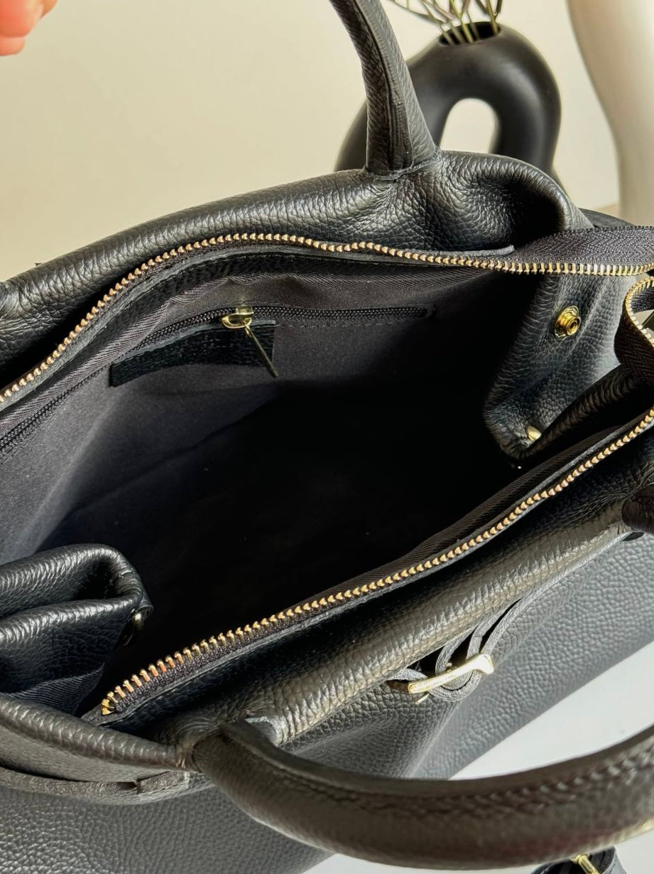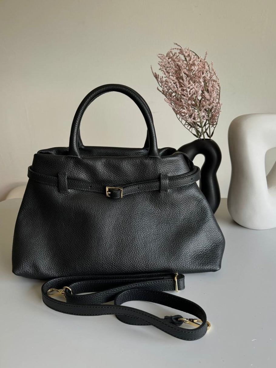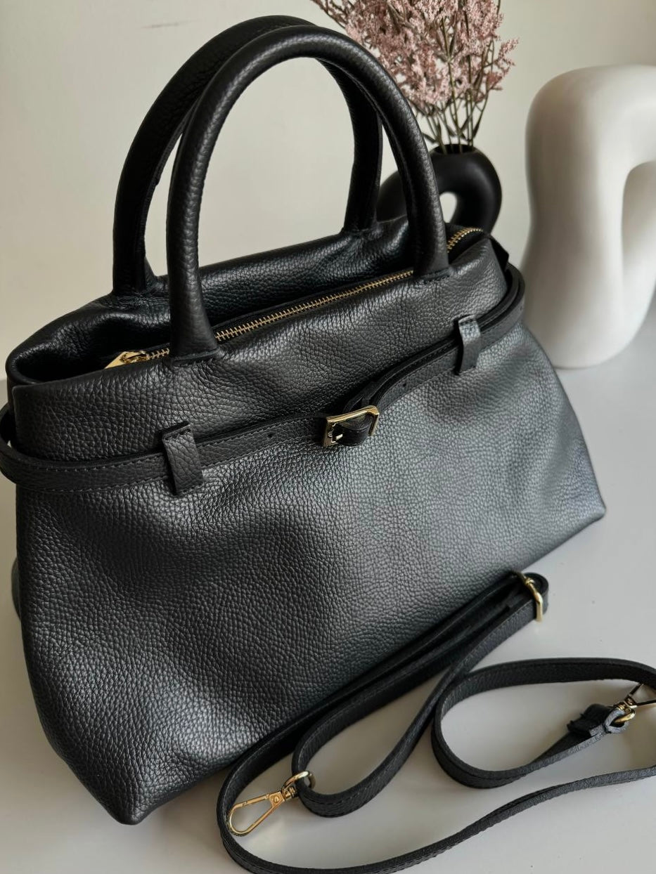 Włoska czarna torebka z naturalnej skóry do ręki lub na ramię