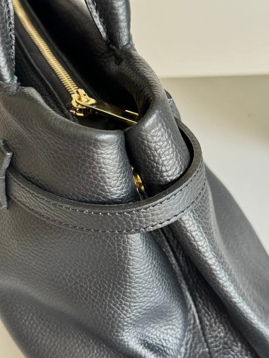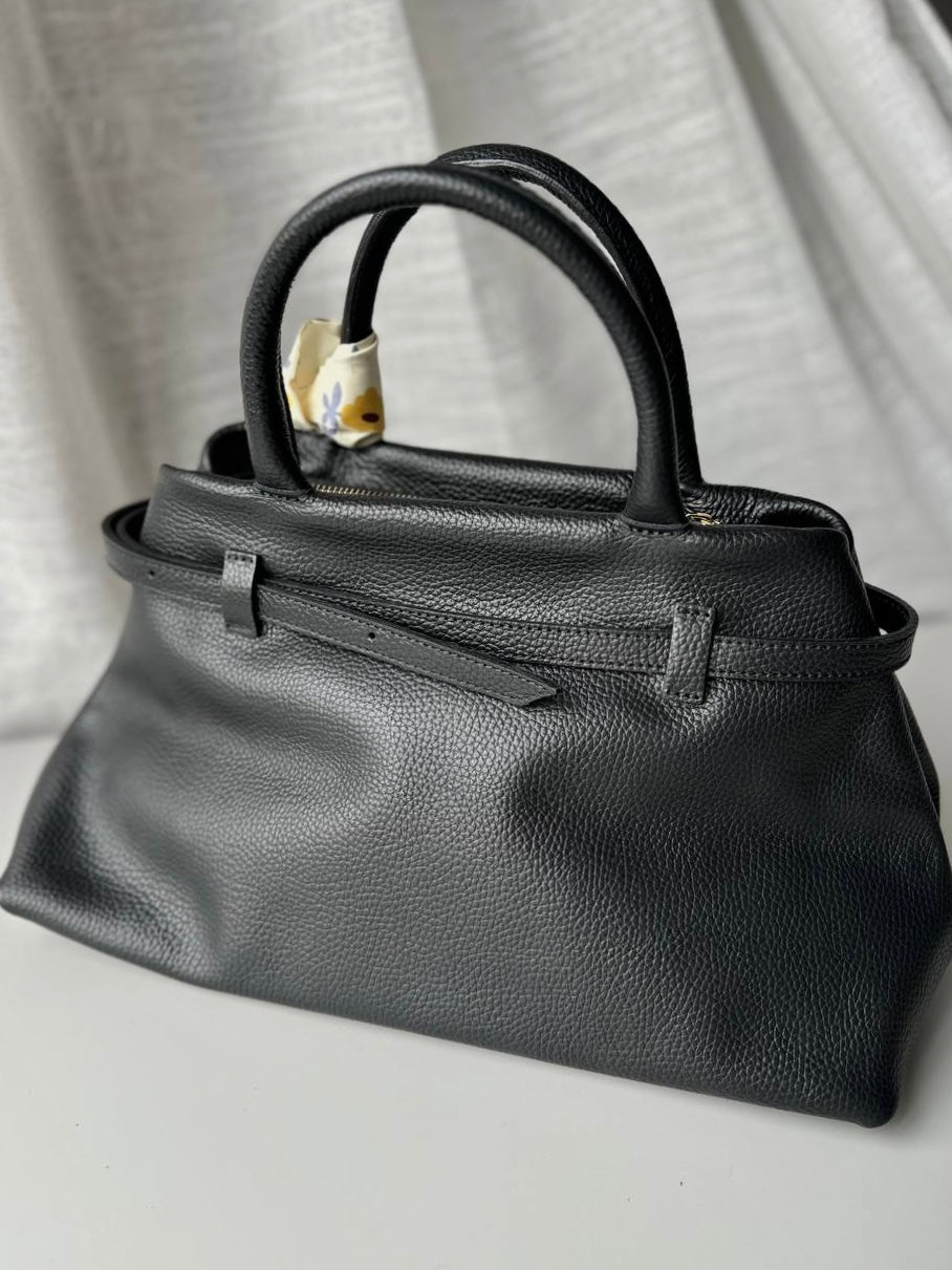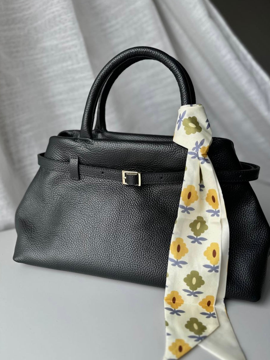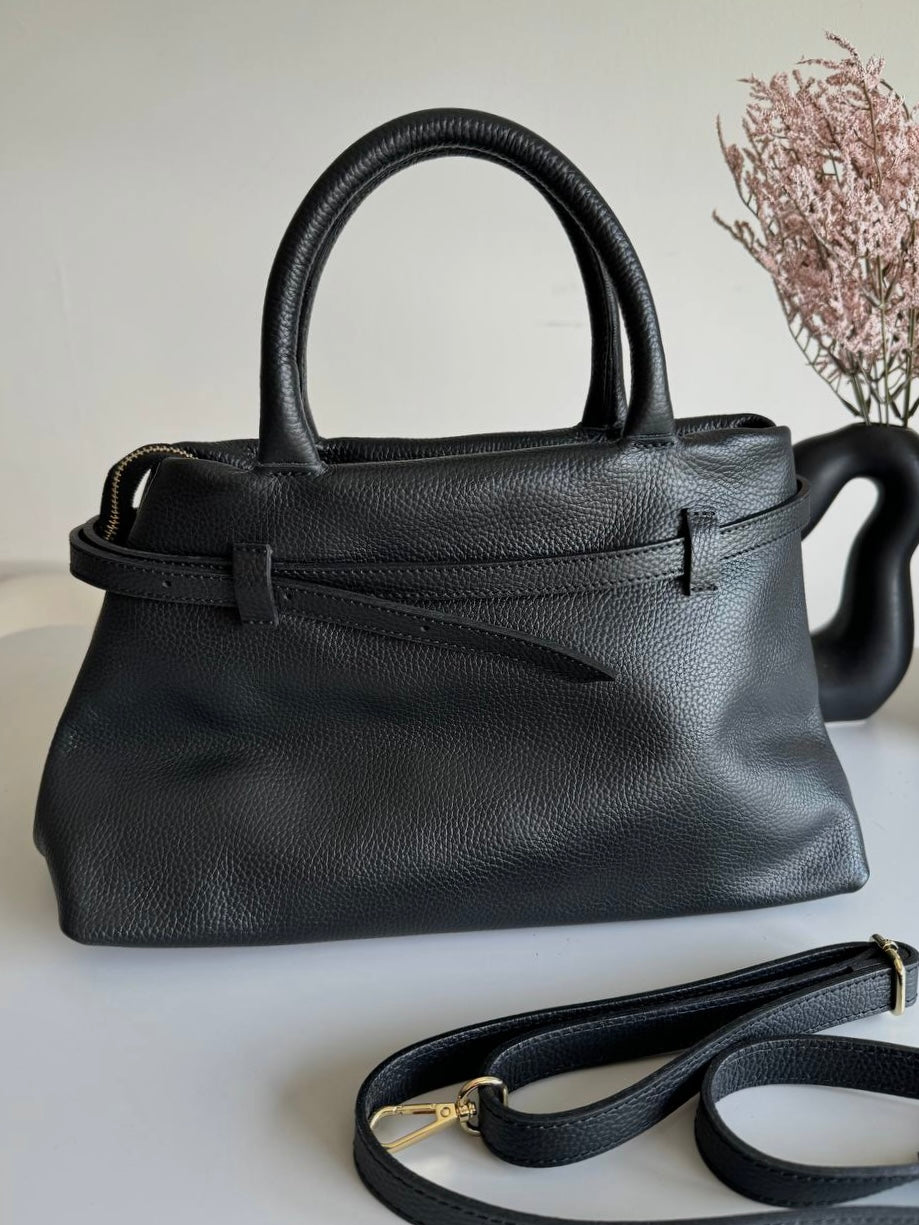 Włoska czarna torebka z naturalnej skóry do ręki lub na ramię