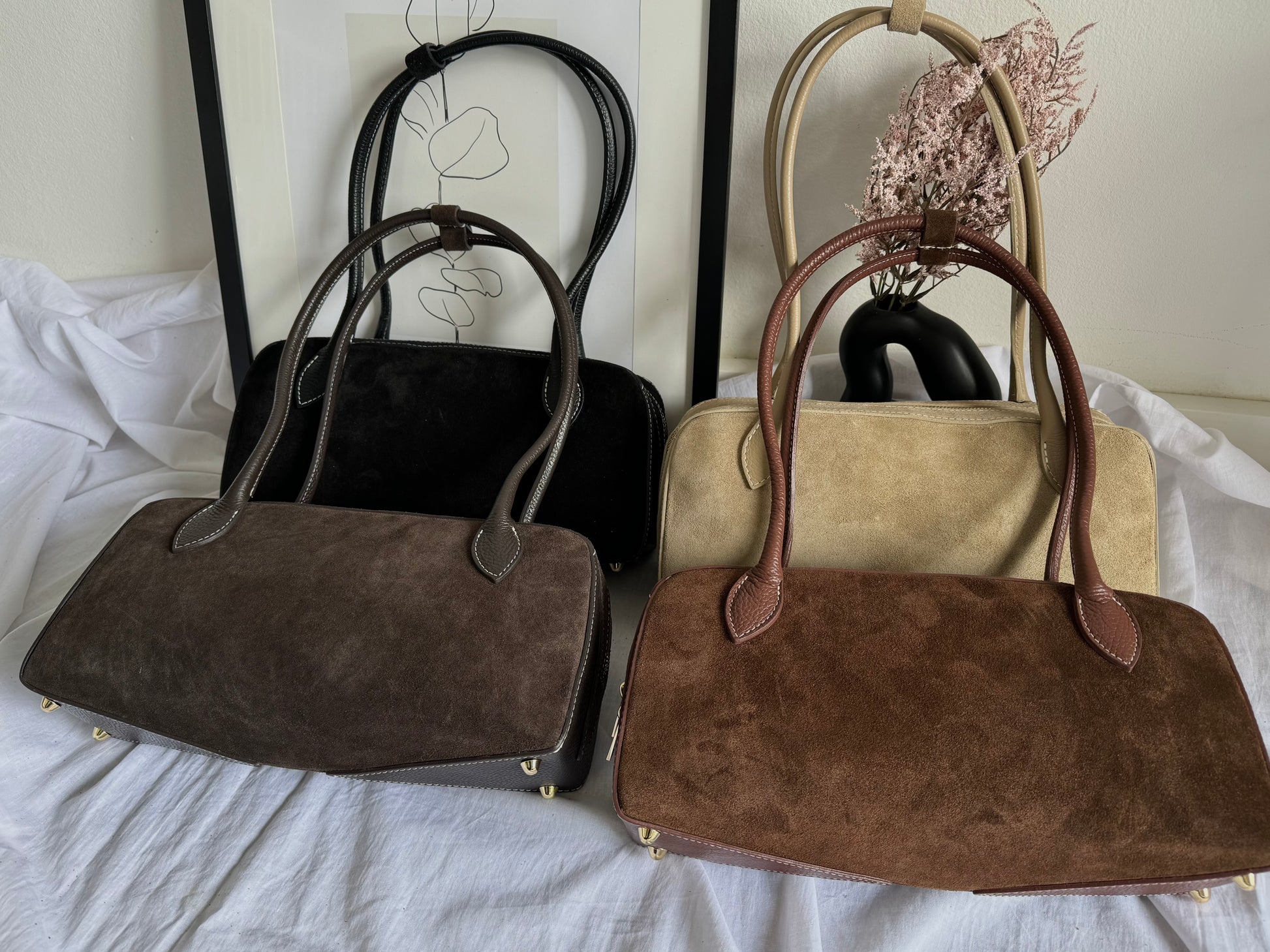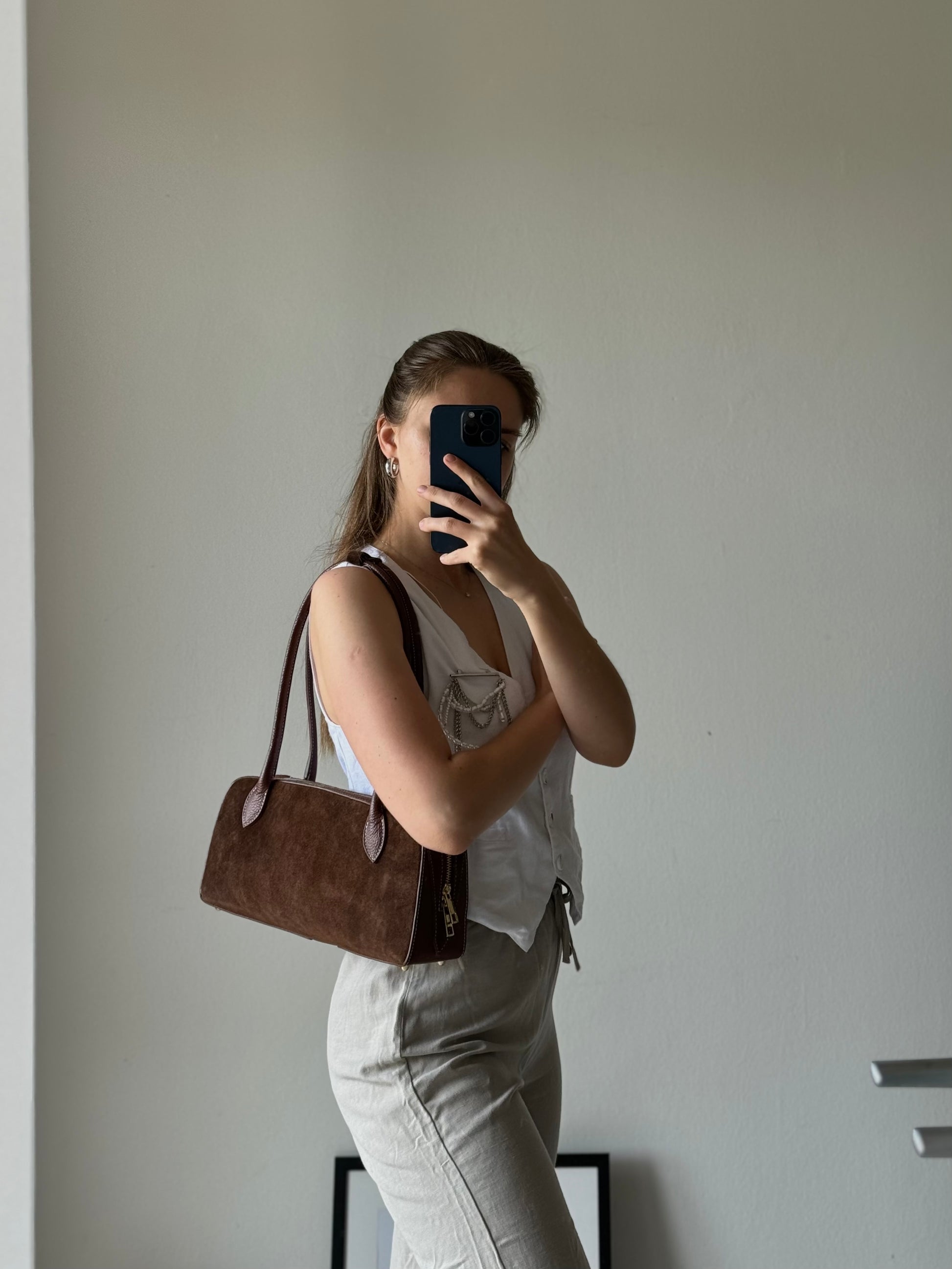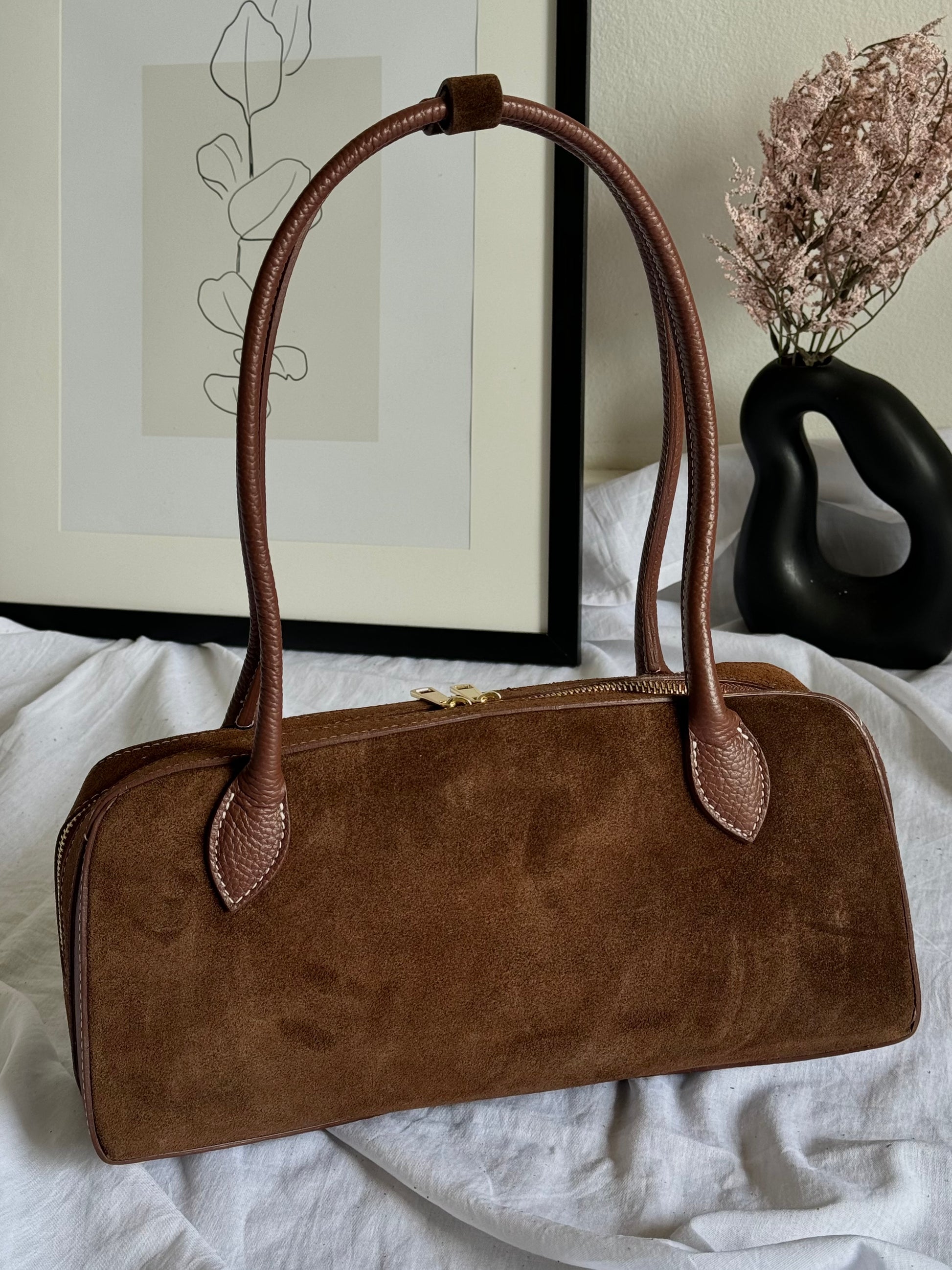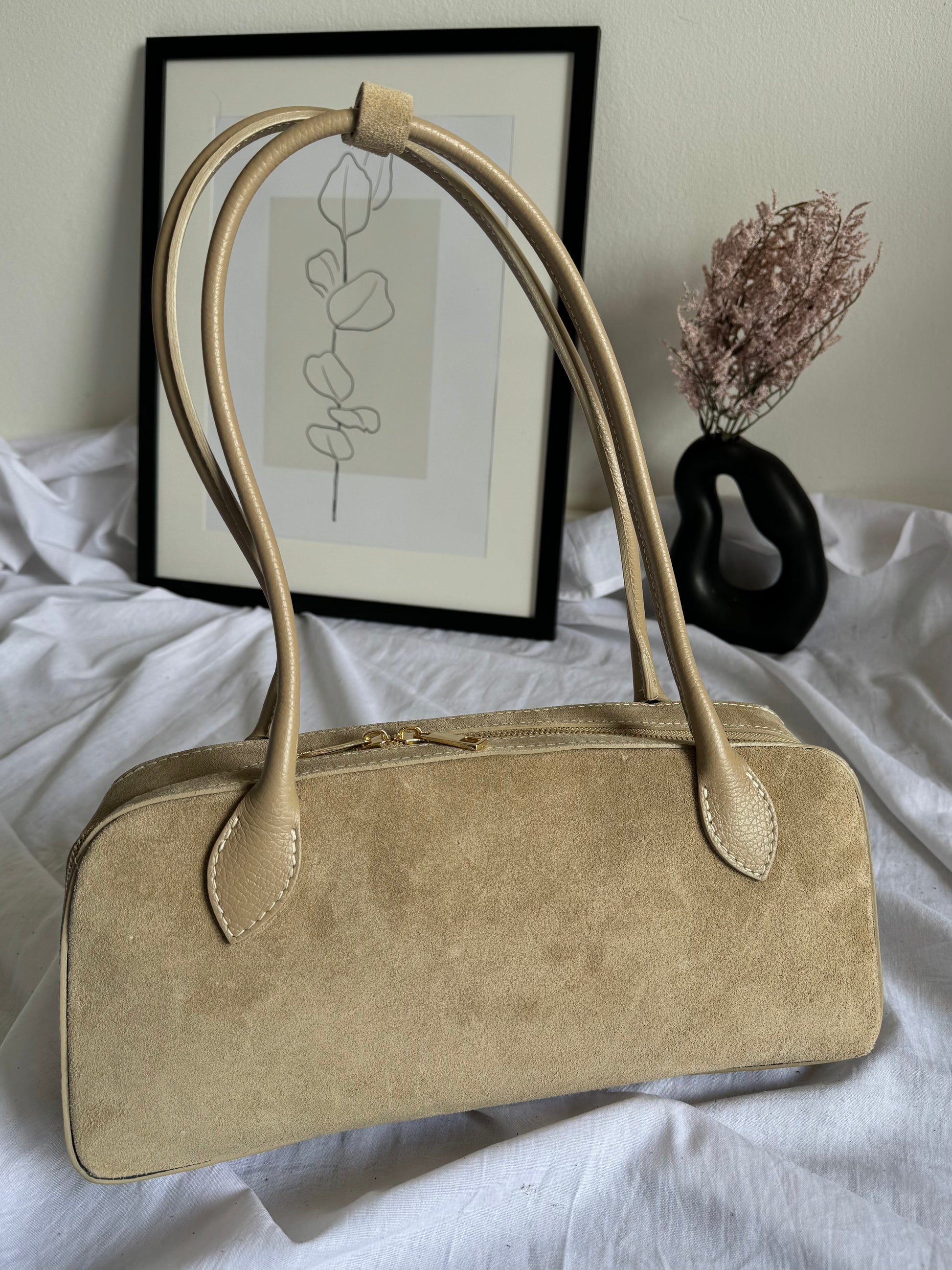 Włoska torebka bagietka z naturalnego zamszu w modnym kolorze